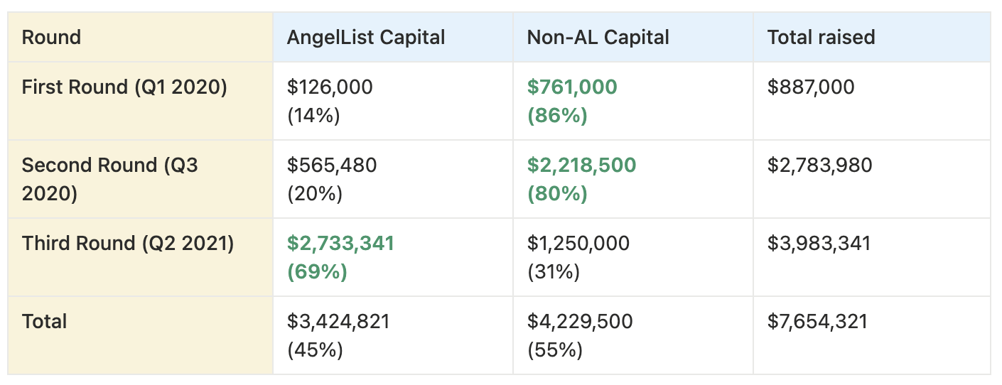 ~70% of the capital in our third round was raised via AngelList vehicles.